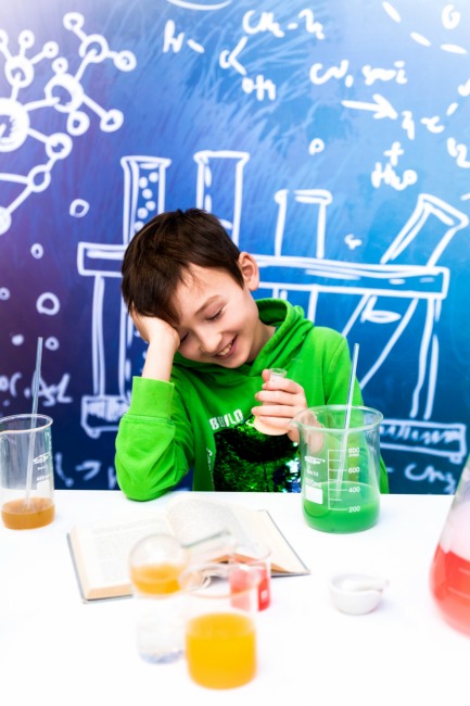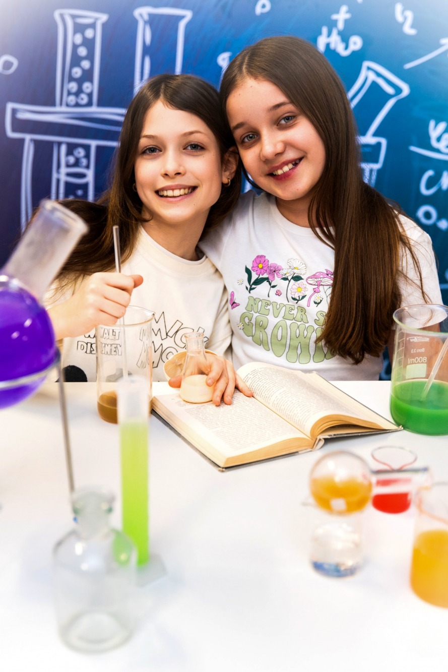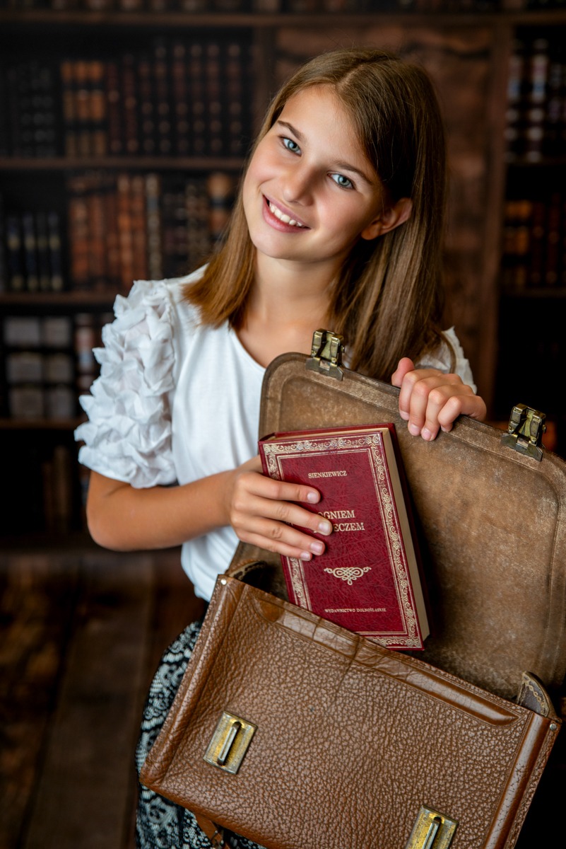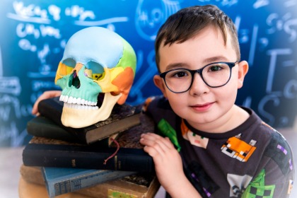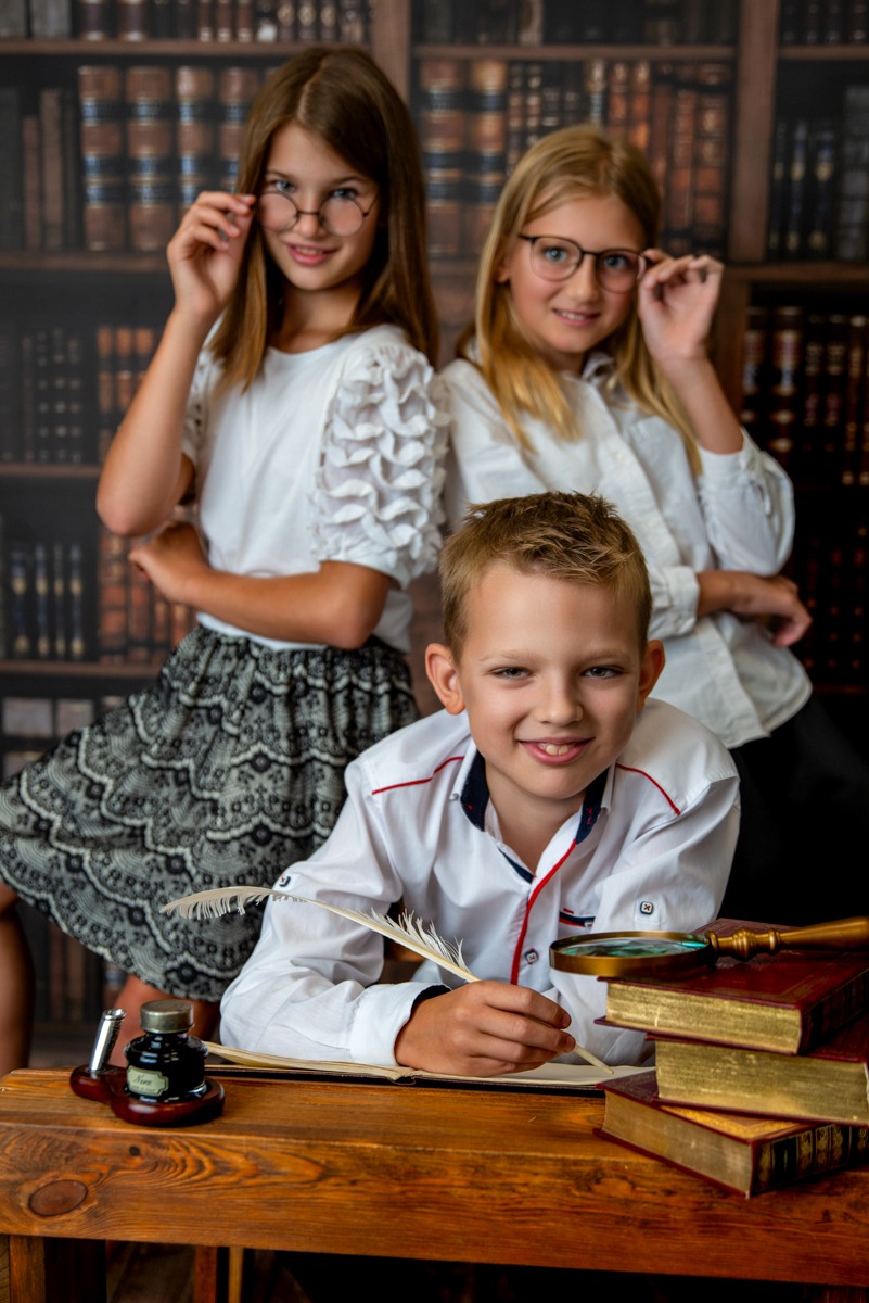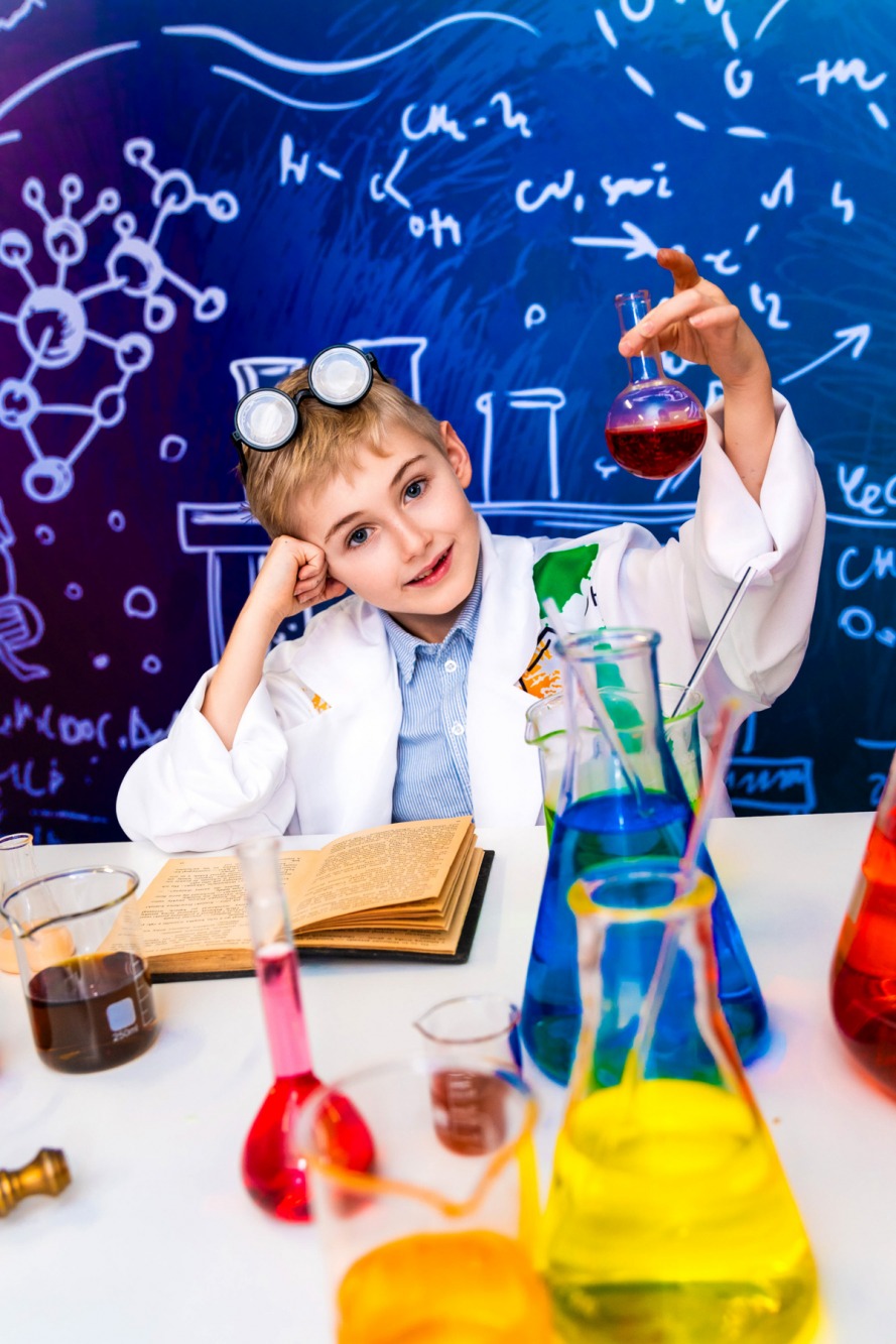 Sesja zdjęciowa „Szalony Naukowiec” to pełna dymu i tajemnic szkolna przygoda w laboratorium, wśród szkieletów, czaszek i kolorowych menzurek, gdzie dzieci mogą poczuć się jak prawdziwi odkrywcy nauki.