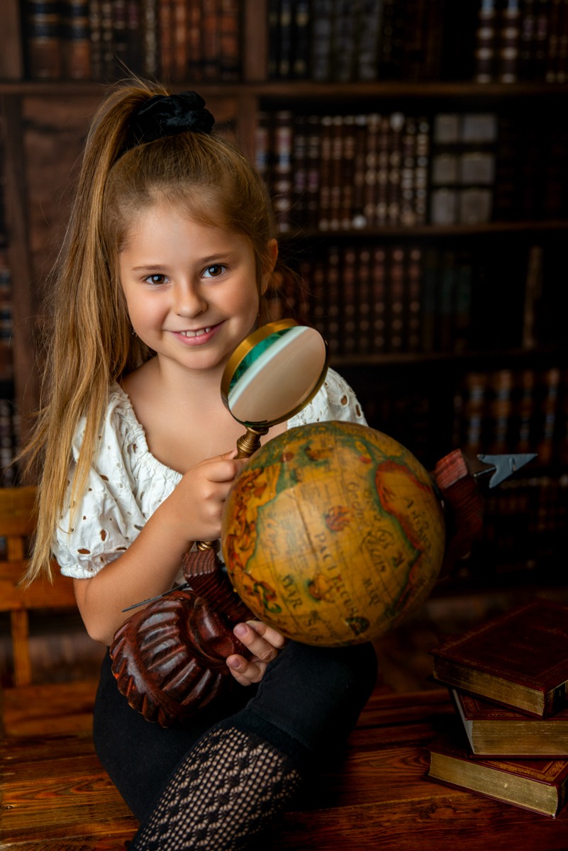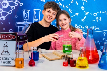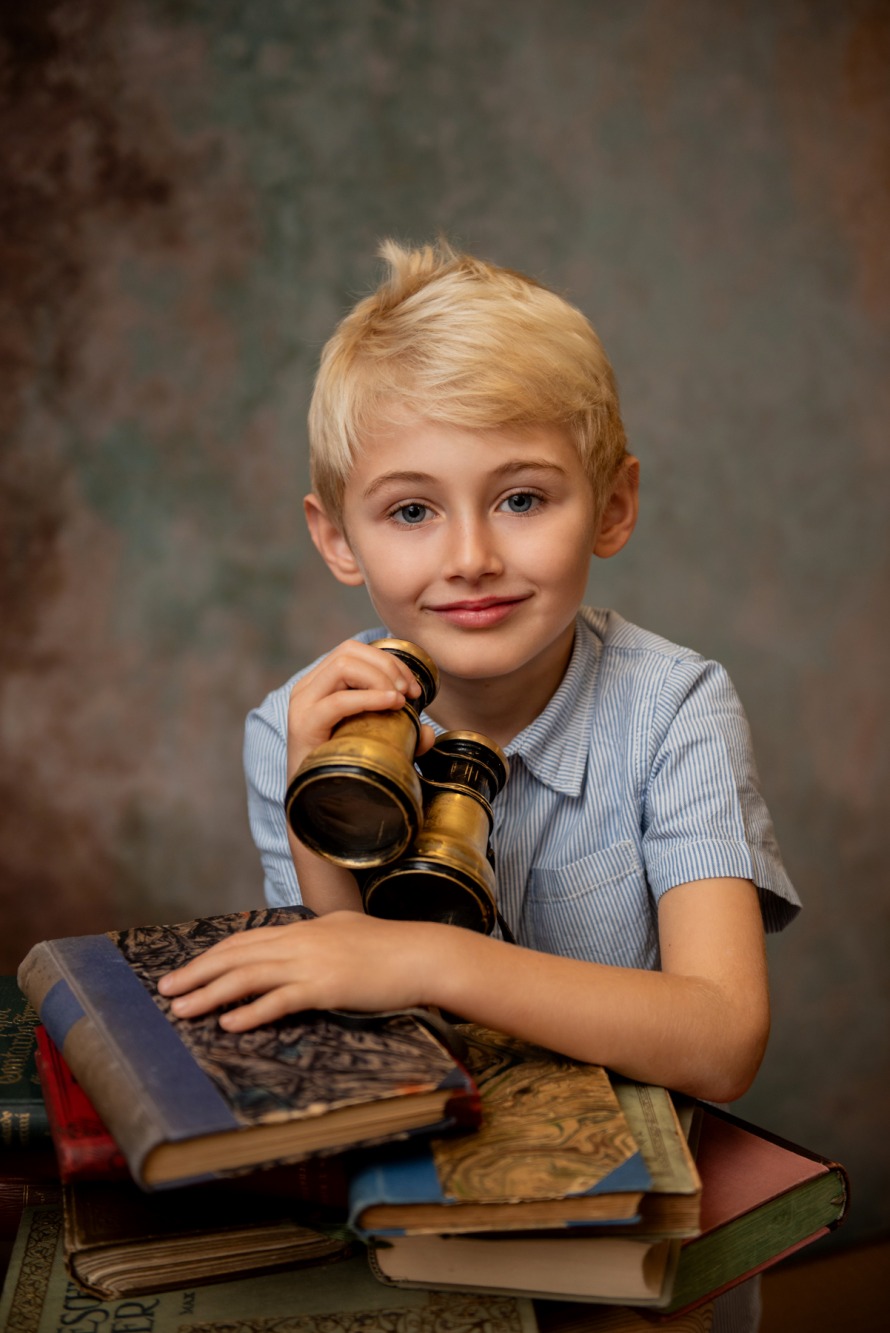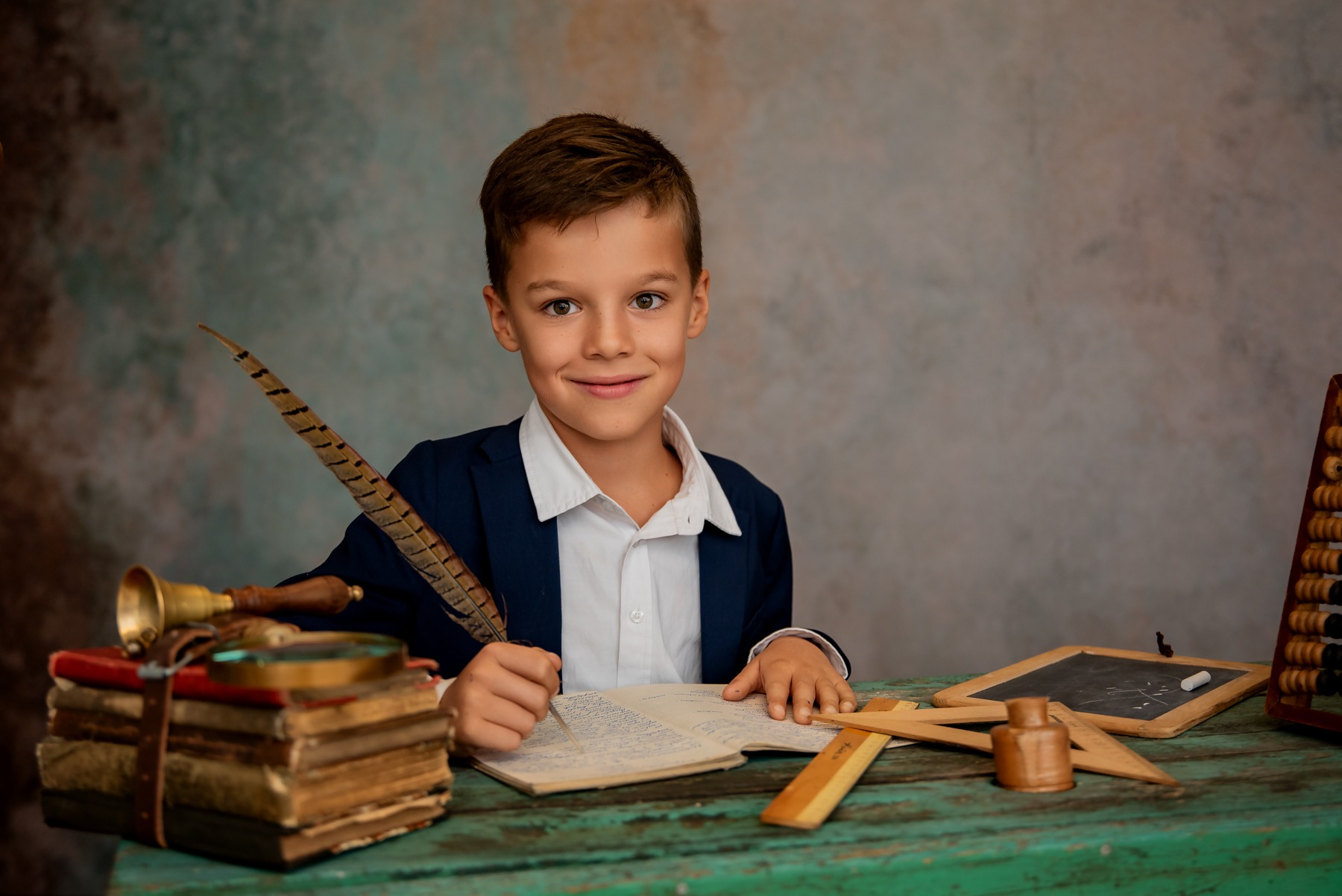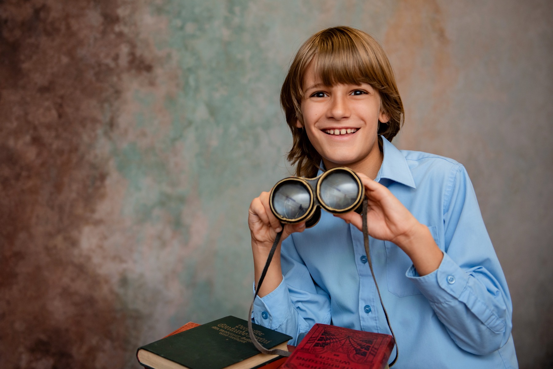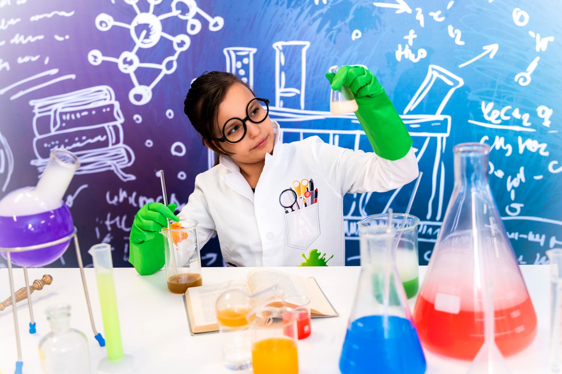 Sesja zdjęciowa „Szalony Naukowiec” to pełna dymu i tajemnic szkolna przygoda w laboratorium, wśród szkieletów, czaszek i kolorowych menzurek, gdzie dzieci mogą poczuć się jak prawdziwi odkrywcy nauki.