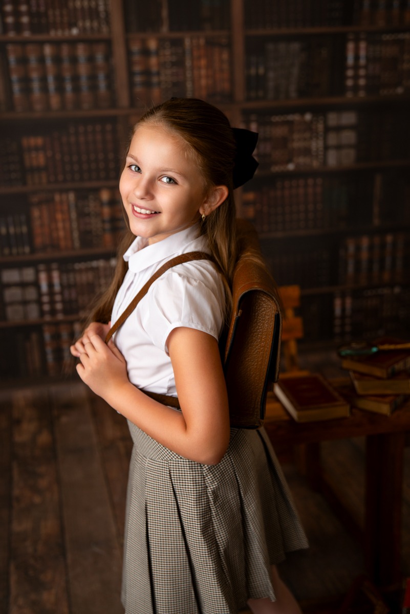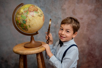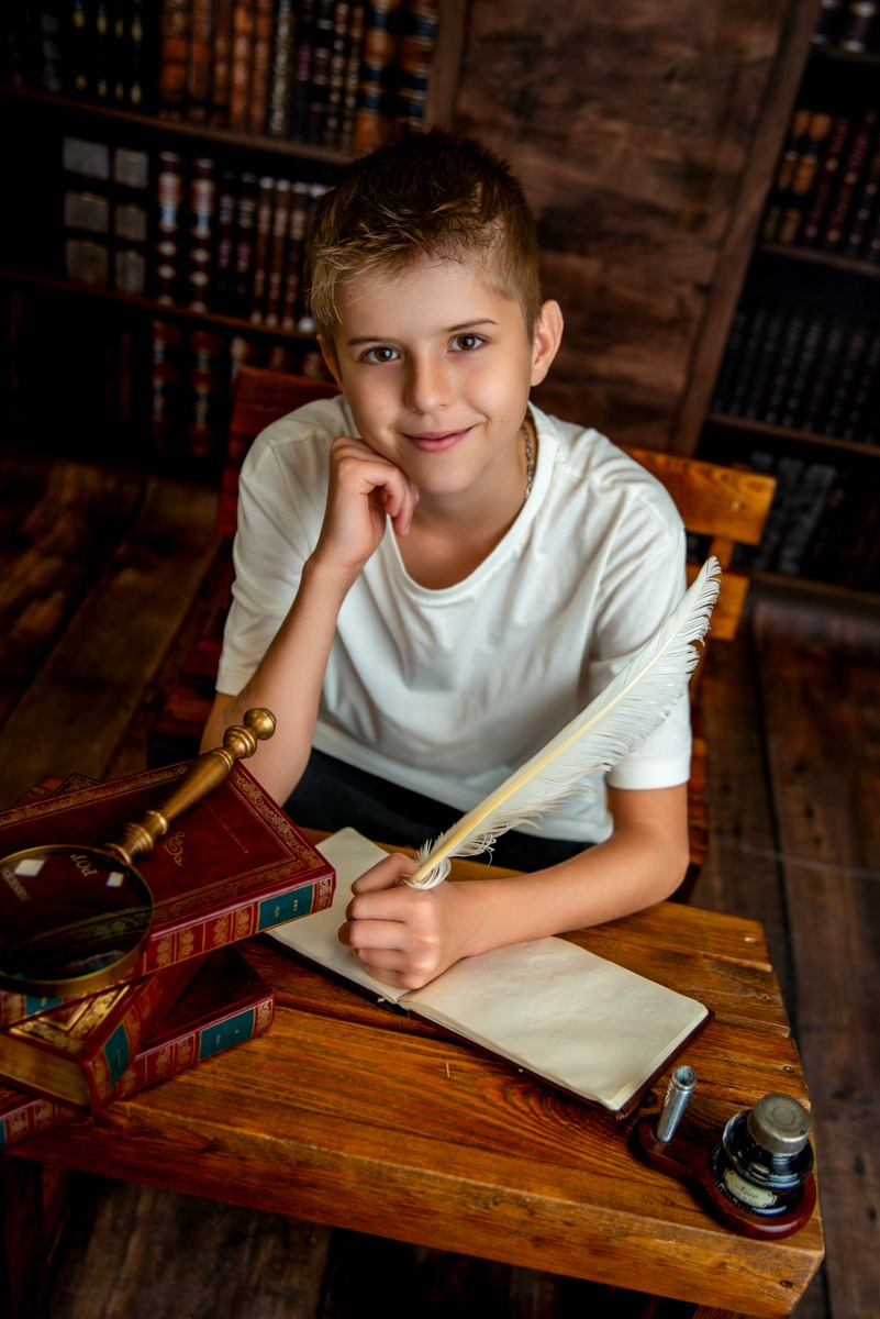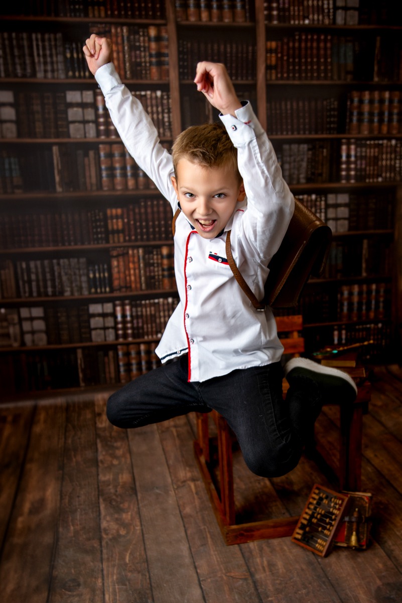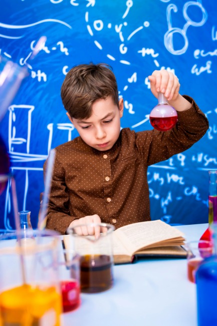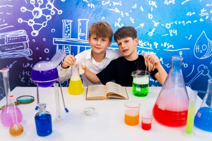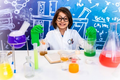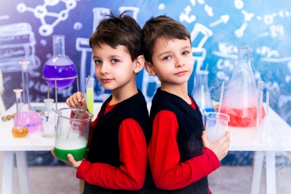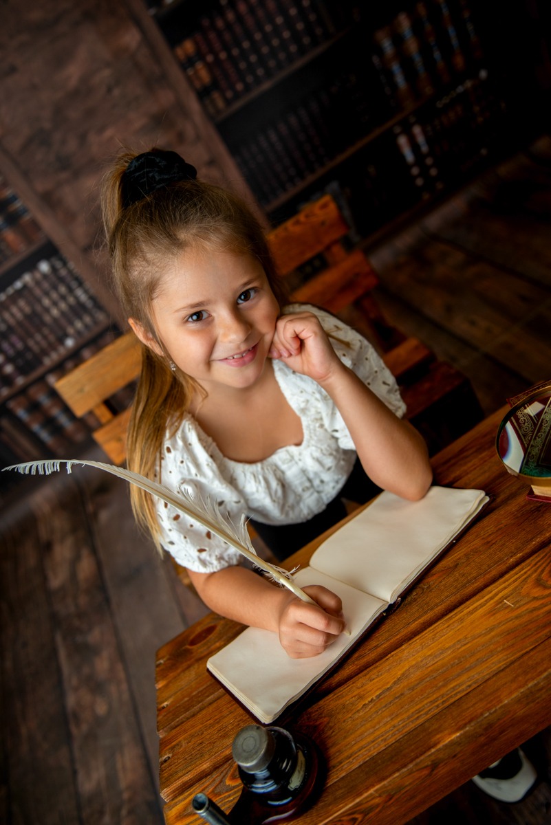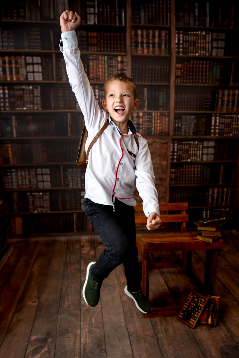 Sesja zdjęciowa „Szalony Naukowiec” to pełna dymu i tajemnic szkolna przygoda w laboratorium, wśród szkieletów, czaszek i kolorowych menzurek, gdzie dzieci mogą poczuć się jak prawdziwi odkrywcy nauki.